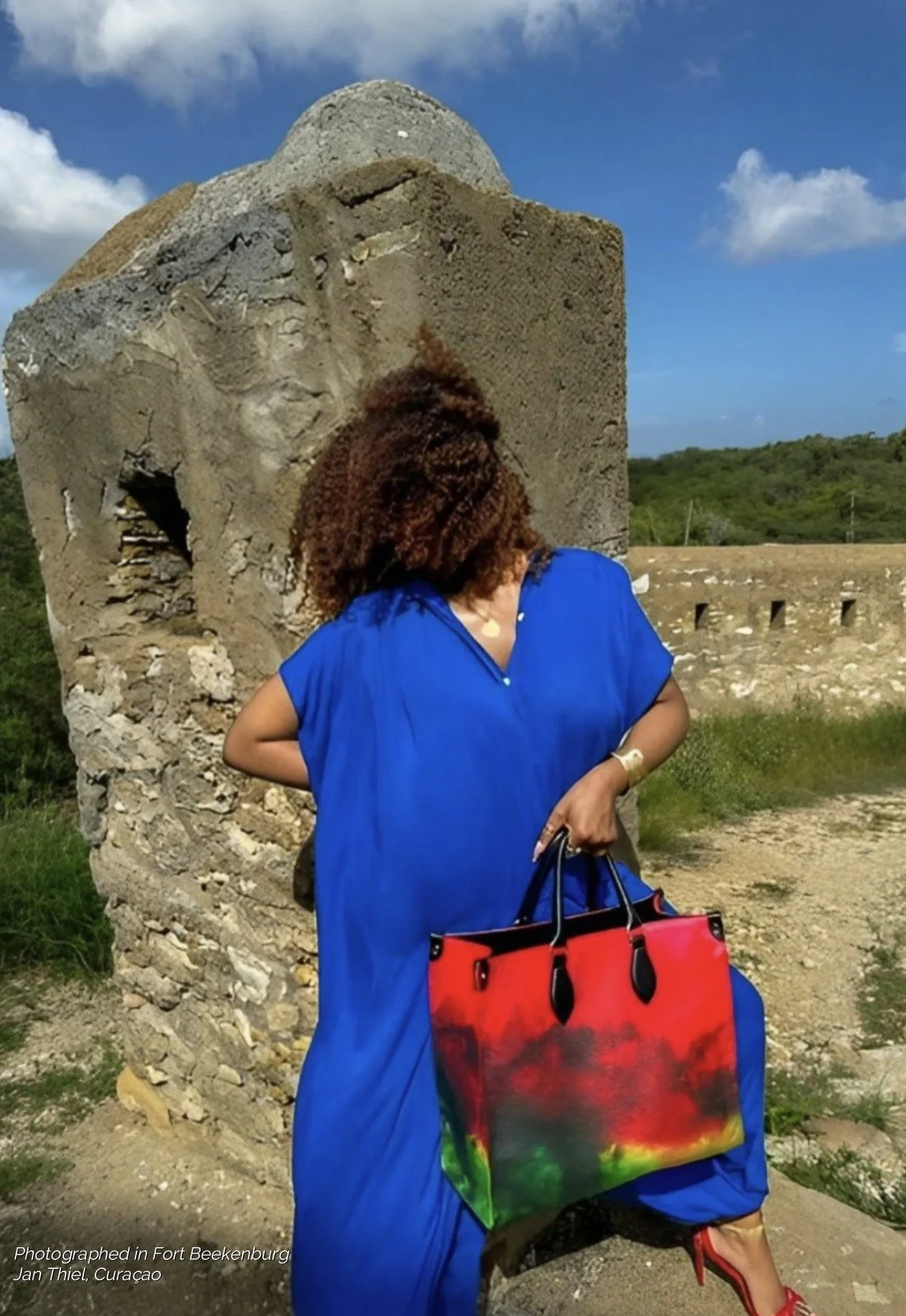 Our “Fertility” Shopper Bag, our largest luxury leather bag, represents the prosperous life that springs forward from the primal life force that is Medusa. Featured in our signature “Primeval” color, this unique shopper bag is enhanced by our custom watercolor design of Medusa in her ancient Libyan form.